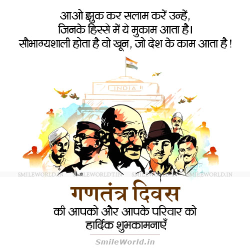 Get 35+ Indian Republic Day / 26 January Gantantra Diwas Wishes, Shayari, Quotes and Greetings in Hindi For Facebook, Instagram and Whatsapp Status Update, Download Happy Republic Day Images in Hindi and Share With Your Friends and Family on Social Media Platform.