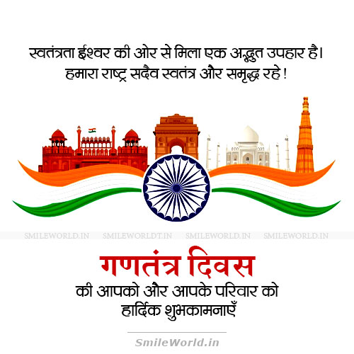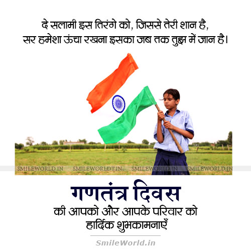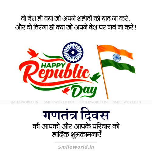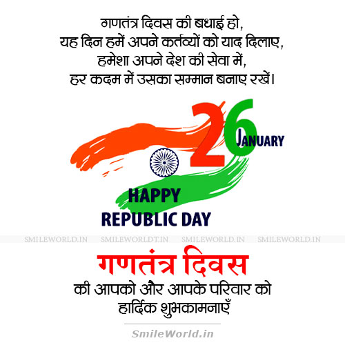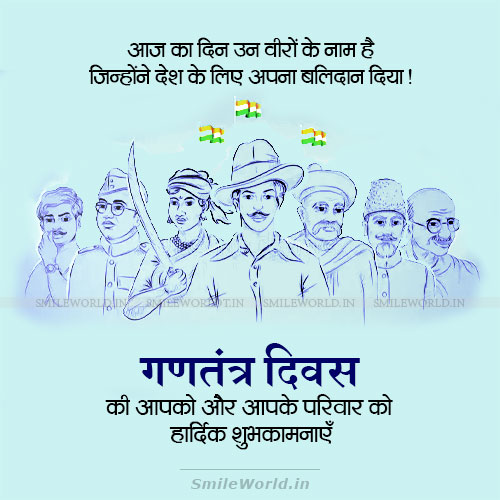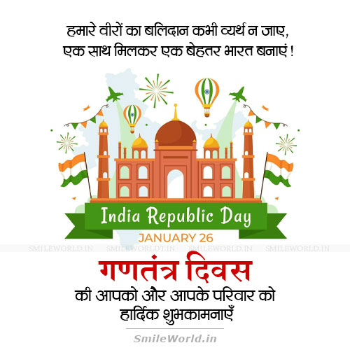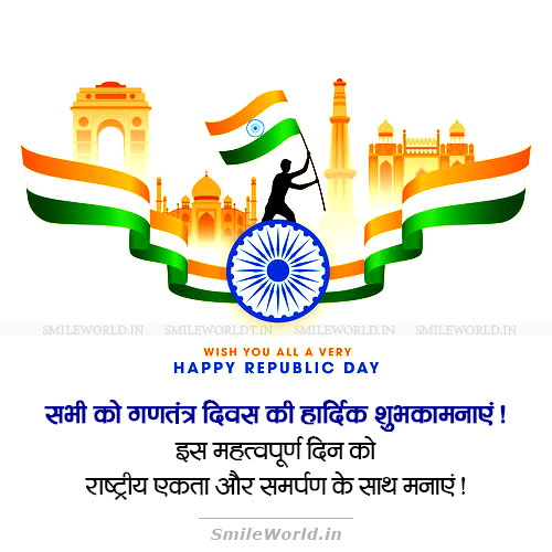 दोस्तों, आप इस पोस्ट में गणतंत्र दिवस के पर्व के लिए 30+ चुन्निंदा बधाई संदेश प्राप्त करके अपने दोस्तों एवं रिश्तेदारों को भेज कर Republic day of india Wishes in Hindi में शुभकामनाएं दे सकते हैं।